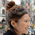 おだんごヘア:以前からよくやっていますね。上の方に結ぶと、髪の毛が落ちてくるけど、あえてそのままにしてルーズな感じにしています。レースアイテム:最近、よく行くお店にレースアイテムが置いてあったし、春になると白色を着たくなるので、このスカートを買いました。今日みたいに1枚で履くほか、スカートの下にジーンズを履くコーディネートもよくやります。