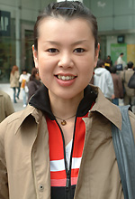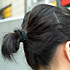 ヘアスタイルは髪がパサついているし、今日は衿が立ち気味ということもありますが、いつもだいたいおだんごにしています。私にとっては、コーディネートもしやすいし、スタンダードなイメージなんです。そういえば、会社の人たちや、仕事場付近の街の人たちも、おだんごにしている人が多いですね。