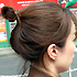 A 髪をアップにすると楽だし、服と合わせやすいんですよね。前髪も上げてしまうときもあれば、おろしているときもあるし、頭の上の方でおだんごをするときもあります。そのときの気分や、服とのバランスを考えて、髪型もコーディネートしていますね。