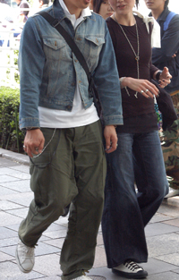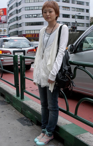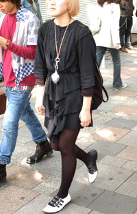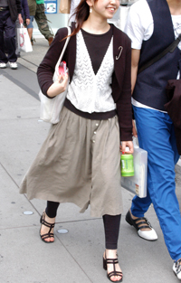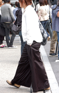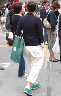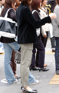 ソックスやタイツ、ストッキングなどを履かずに、素足で女靴を履いている人すべて。