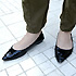 靴は一番合わせやすい黒が欲しかったんです。普段から、女の子っぽい靴を履くことが多いですね。パンプスから靴下が見えてしまうのが嫌なので、寒いけれどパンプスのときはいつも裸足です。