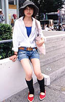 直近では、03年6月にハーフパンツとしてズームアップアイテムで取り上げたが、当時の足元はくしゅくしゅソックスの何回目かのリバイバルとビルケンサンダル、スニーカーなど、スポーティで元気なウラ原宿系の女の子、『mini』のような着こなしだったのは記憶に新しい(右写真・いちばん上)。