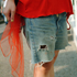 もともと穴が開いているデニムパンツだったのですが、あまりに穴が大きくなって祖母が縫おうとするので、膝から下を切ってしまいました。
