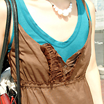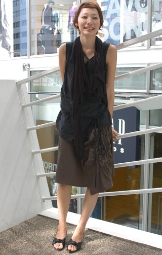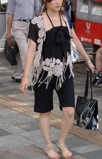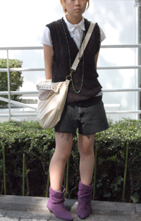 いちばん上に重ねているトップスに袖がないものすべて。色やデザインは問わない。
