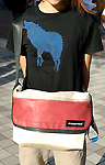 メッセンジャーバッグの定義は、いわゆる横長の四角い斜め掛けバッグの総称で、ストラップを短めに掛けるのが定番スタイルだ。今年一気にメジャートレンド化したフライタグをはじめ、カラフルなナイロンやビニール素材でロゴやプリント柄がデザインとして施されるなど、スポーティなものが目立つなか、黒や茶、カーキといったベーシックな色合いのものに缶バッチなどを複数付けてカスタムする子も少なくなかった。