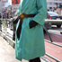 このコートは、ヒプノティックで買った古着です。色と同色糸を使ったゴブラン織りに惹かれました。50年代のディオールやバレンシアガが好きなので、クラシックな形も気に入っています。このコートは実はガウンで、黒ベルトはLIMI feuのものです。ウエストマークにしたくて急遽付けてきました。