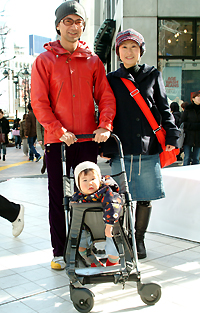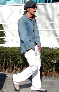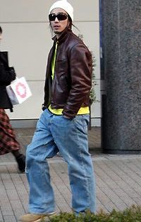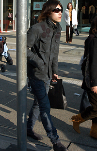 帽子の深被り+サングラスで小顔効果を期待。ある意味セレブ風で...