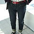 このジーンズはHAKのもの。縦糸が金糸が入った生地を使っているところが気に入りました。裏地の金糸を見せるためにロールアップしてはいています。