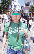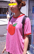 トップスに文字やイラストなどが“ロゴ状”にデザインされているもの。袖の長さや素材や色は問わない。また、上にシャツなどを羽織っている場合も、ロゴが明確に見えている人は含む。