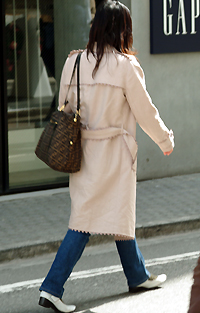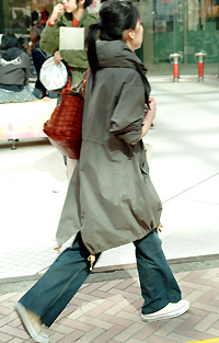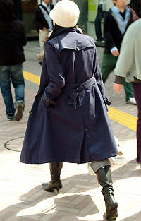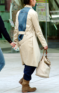 いちばん上に着用したアウターが、下に着用するアイテムをすっぽりと覆い隠すように着用しており、コットンやナイロン、リネンなど春らしい素材のもの。