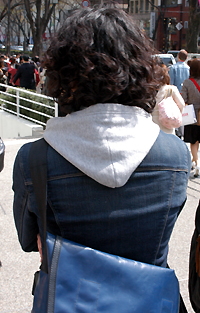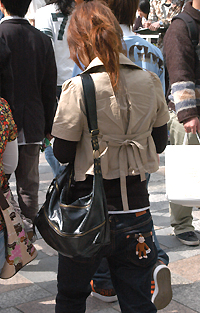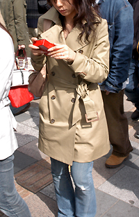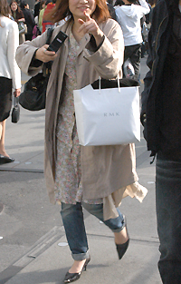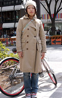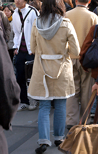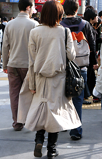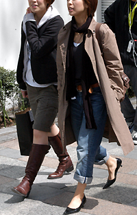 いちばん上に着用したアウターが、下に着用するアイテムをすっぽりと覆い隠すように着用しており、コットンやナイロン、リネンなど春らしい素材のもの。
