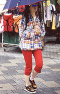 丈がヒザ、ふくらはぎ、くるぶしなど、中途半端なところで切り落としたようなパンツ。色や柄、素材は問わない。