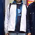 A このフリースは借り物なんですけど、今日のコーディネートの差し色として着てみました。最近色にハマっていて、オレンジ色の鞄を使っています。気に入ってます。