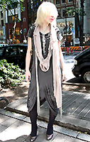 そして、いわゆるストリート系、またはデルカジ(モデルカジュアル)系、雑誌では『In Red』や『Ginza』などをよく読むファッショントライブには、スクエアネックや深めのVネック、襟足もちょい開き気味でゆるやかなシルエットのワンピースにスリムなデニムを合わせるスタイルが支持されていた。数ではモノトーン系が多いものの、今春夏の70s風フォークロア調・エスニック調の派手めの柄ワンピ(または白いチュニック風ワンピ)が人気。このファッショントライブのセクシーなポイントは、鎖骨見せ&襟足+ロングヘアの掻き上げ、キーワードはガーリーなセクシーといったところだろうか。