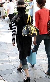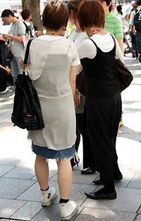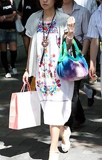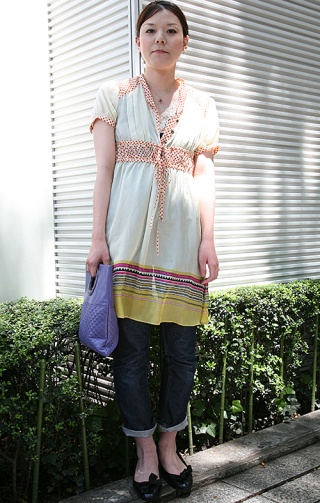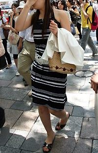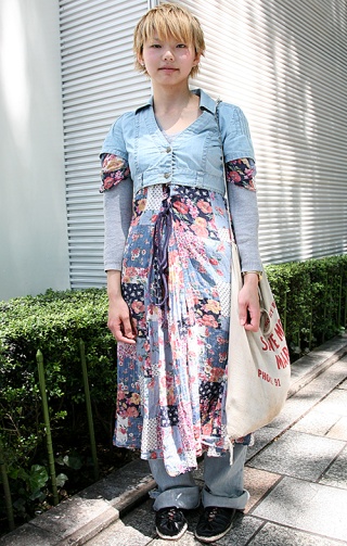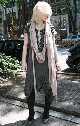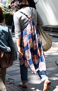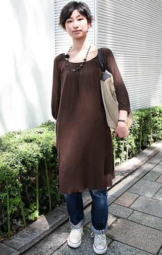 ワンピースの下にパンツやスパッツ、タイツやハイソックスなどのボトムス/レギンスを重ねて着用するスタイル。