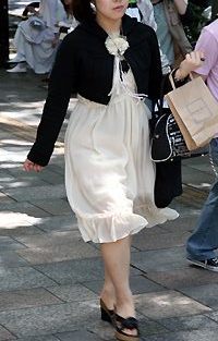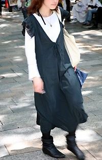 トップスとボトムスが繋がっているスカートすべて。襟元のデザインやシルエット、丈、素材、色、柄は問わない。上にカーディガンなどを重ねているものも含む。