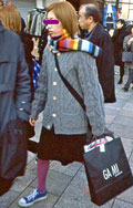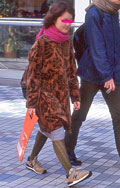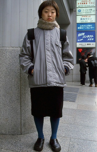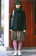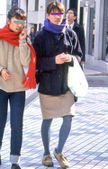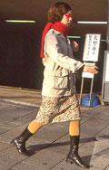 スカートを合わせて着用している人。靴はブーツでもサンダルでも、スニーカーでも構わない。