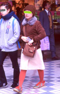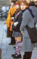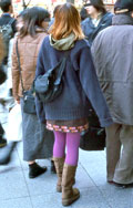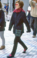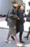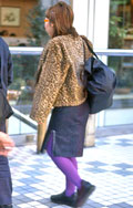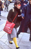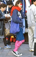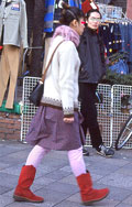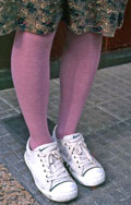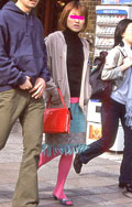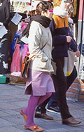 白、黒以外のソックスやタイツ、ストッキングなどを履く女性。合わせるボトムスは、スカートだけでなく、パンツの裾から色が見えている場合は含みます。つまり、カラフルな足(足首)をコーディネートの一部として取り入れている人。