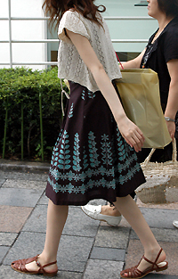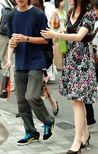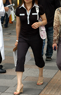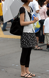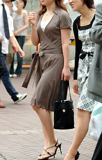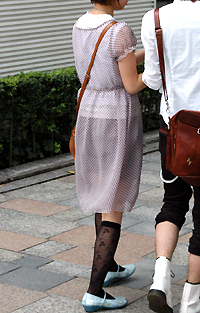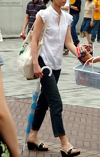 袖丈が肩と肘の中間よりも短いトップスを着用している人すべて。ワンピースも含む。色や柄、素材は問わない。