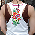 かごバッグはターコイズのラインが太めに入っているところがお気に入り。白いタンクトップは刺繍と切りっぱなしがかわいくて買いました。