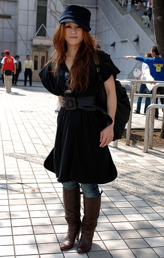 109系ギャルに多いのがミニ丈ニットワンピ。スパッツを合わせ...