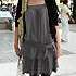 A ワンピースはQのもの。フリルがかわいくて買いました。黒だと重くなると思い、グレーを選びました。