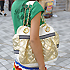 女の子=ピンクというイメージが強い中、緑はカッコいいイメージが新鮮でした。それに夏には締まる色だと思います。後ろのプリントもお気に入り。エビちゃん系、Bガール系など友達のしている格好に合わせて、わたしもいろいろな格好をします。買い物をする時はラフなスタイルが多いですね。