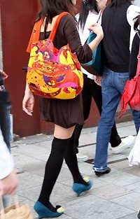 ダークになりがちな秋冬はカラフルな小物が支持される。タイツ+...