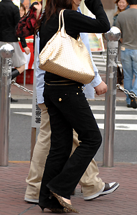 新宿ではボッテガヴェネタ風のメッシュバッグが人気。光沢の強い...