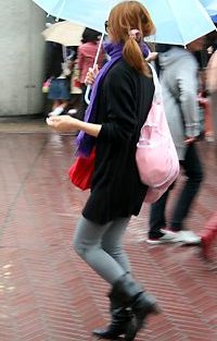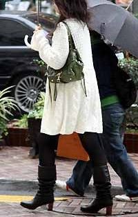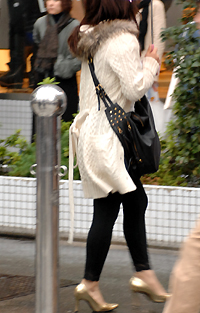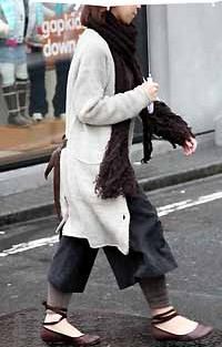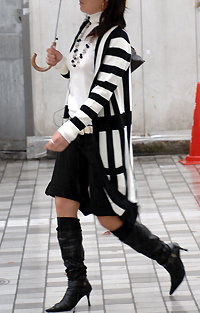 ロングカーデよりも短い丈のボトムスでナマ足を覗かせるのがギャ...