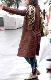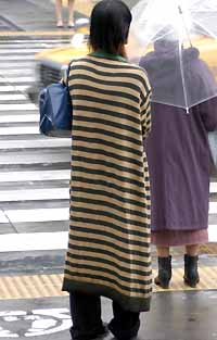 カラフルなボーダーが人目を引いていた超ロングカーディガン。ハ...