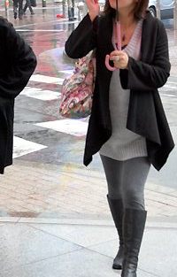 インナーを黒で統一。ロングカーディガンはスパッツやレギンスな...