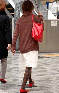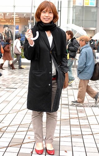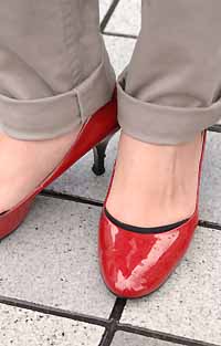今月に入り赤い靴をポイントにした着こなしが急増。エナメルパン...