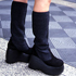 去年まではストレッチブーツを履いていましたが、飽きてきたので新しいのを買ったんです。全体的にニットでゆるいシルエットとめずらしさに惹かれて買いました。9月になって解禁なのでは?と思い履いてきました。109の店員さんなどは前から履いていたので、違和感はありません。