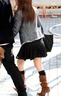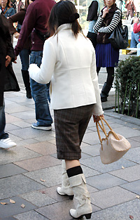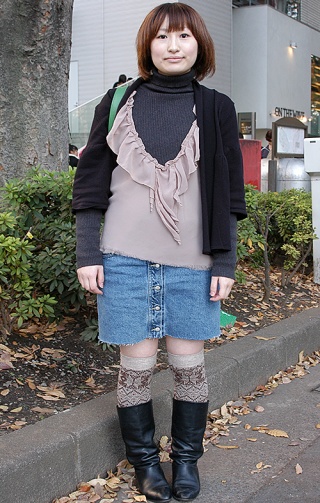 ソックス+ブーツのレイヤードはミニスカートを好むコンサバ〜モ...