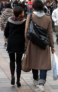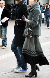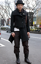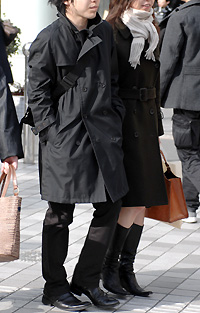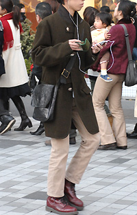 原宿では20代前半のモード・ストリート系の間でひざ丈のアウタ...