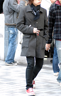 新宿で多く見られたのがお尻が隠れる丈のコットンアウター。20...