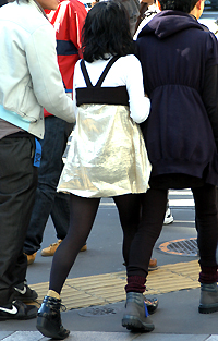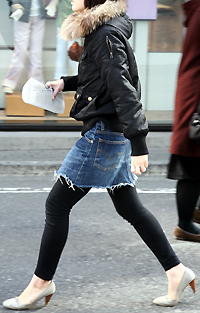 足の履き口が分かれていないものすべて。スパッツやレギンス、超スキニーデニム(緩みのまったくないもの)をレイヤードしている場合も含む。