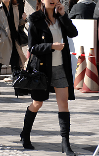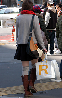 丈がヒザより10センチ以上のボトムスすべて。スカートでもパンツでもワンピースでも可。色や柄、素材は問わない。