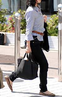シャツの上からベルトを締めるスタイルも多く見られた。フラット...