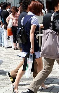ギャル系の間ではカラフルなストライプシャツも見られた。ベーシ...