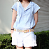 今日はオールインワンは人とかぶらない、珍しいデザインが気に入っています。足が長く見えそうな気がするので、ショートパンツはよくはきます。去年はヒザ丈のパンツをはいていましたが、今年は短い丈が気分です。暑いですし。レースっぽいものが好きで、レースの小物やベストをよく合わせて着ています。