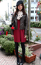 レザーブルゾン+Aラインワンピースは人気のスタイリング。フェ...