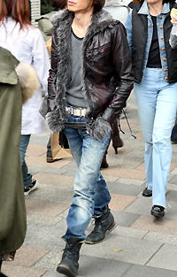 ギャル男に多かったのが衿にファーが付いたレザーブルゾン。全身...
