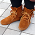 A:ミネトンカを買いました。今、どこ行っても売り切れだと聞いていたんですが、ネットで見つけたので買いました。