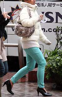 ギャル系に急増しているのがカラースキニーパンツ。ギャル系は広...