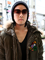 このサングラスは高円寺の古着屋で買いました。大きいタイプのメガネが好きで、3年位前からよくつけています。髪をセットする必要がなくて楽なので、ニット帽とサングラスを合わせることが多いです。メガネは、買ったり売ったりして、今は家に10個くらいあります。黒か茶色のものが多く持っています。