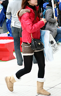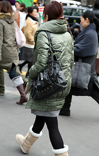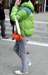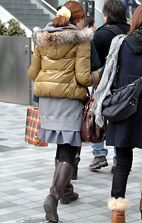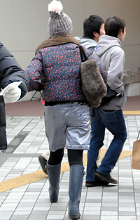 いちばん上に着用したものが、ダウン素材または中綿入りのトップスすべて。色や柄、丈は問わない。