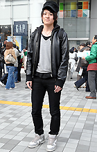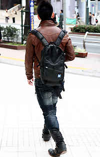 原宿ではレザーのリュックも見られた。ナイロン素材よりもカジュ...