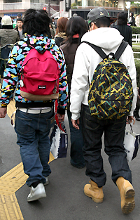20代後半〜30代の女性にはキャンバス地のリュックも見られた...